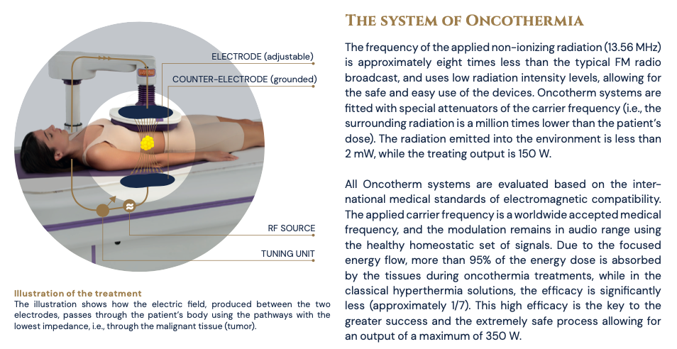 - Az alkalmazott RF-frekvencia nem ionizáló, és körülbelül nyolcszor alacsonyabb, mint a kereskedelmi FM-rádióadásokhoz általában használt frekvenciák, így ionizáló hatások nélkül biztosít mély behatolást.